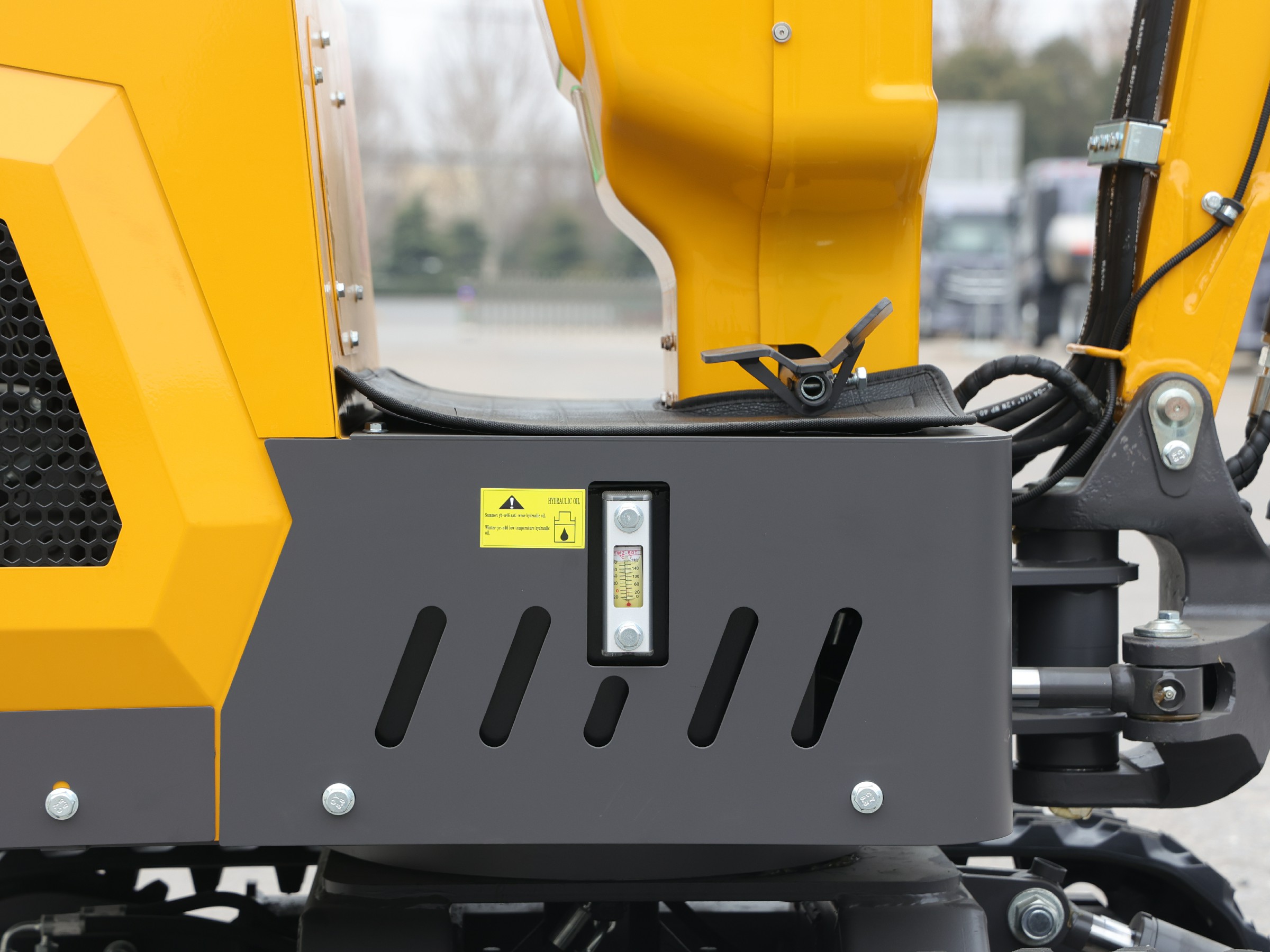 The cabin offers plenty of space, a flat floor for easier movement, and comfortable access. The electronic control panel provides an easy overview of functions such as operating hours, battery voltage, lighting, and startup. Ergonomically positioned handles, a comfortable seat, and a safety belt ensure safe and efficient operation in all working conditions.