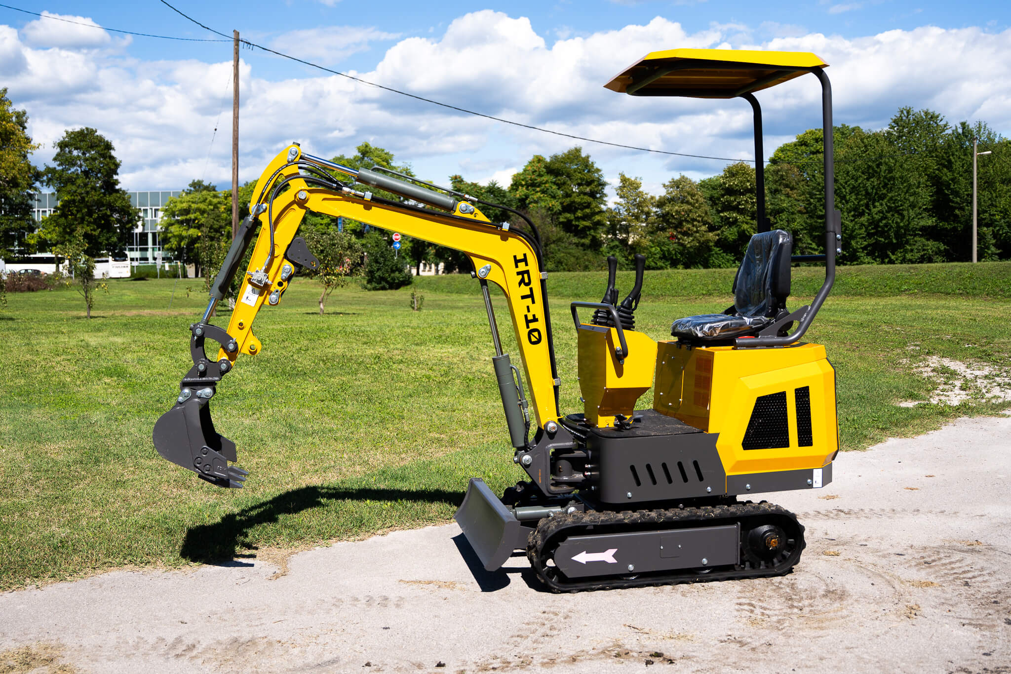 Mini excavator IRT-10 combines exceptional digging power, stability, and maneuverability in a housing only 940 mm wide. Equipped with a reliable KOOP KD192F engine (7,6 kW) and an advanced hydraulic system that ensures precise and powerful operation. 360° rotation, rubber tracks, and the side arm movement function allow work even in the narrowest spaces. The comfortable control console and dozer blade further enhance the versatility of the machine, making it a perfect choice for construction work in urban areas or on hard-to-reach terrains.