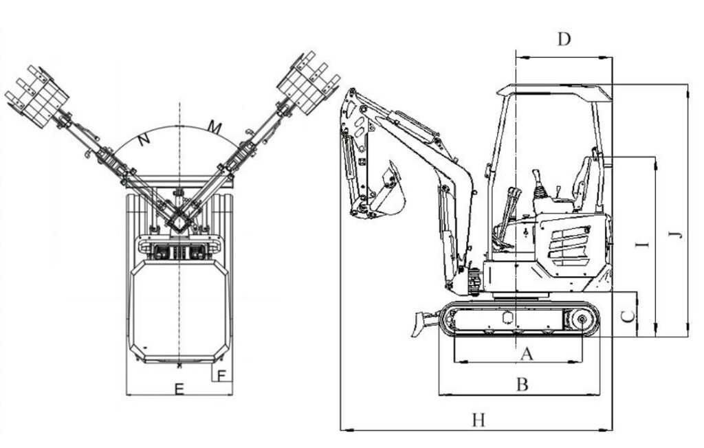 This machine combines high digging power, an advanced hydraulic system, and a stable chassis width of 1000 mm. 360° rotation, rubber tracks, and lateral arm movement (43° to the left, 48° to the right) enable efficient operation even in tight spaces. The control console, dozer blade, and adjustable undercarriage further enhance the machine’s versatility on various terrains – from urban environments to challenging construction sites.